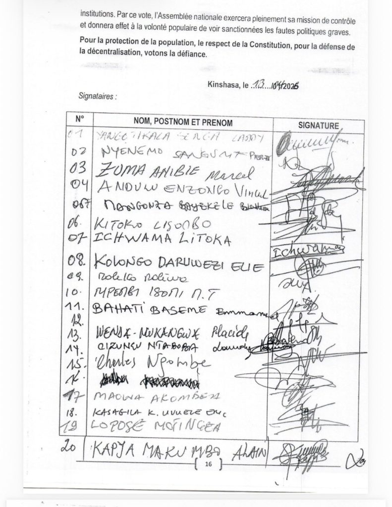 Par ailleurs, la motion évoque également une entrave au bon fonctionnement des institutions provinciales et locales, ainsi que des accusations d’excès de pouvoir.