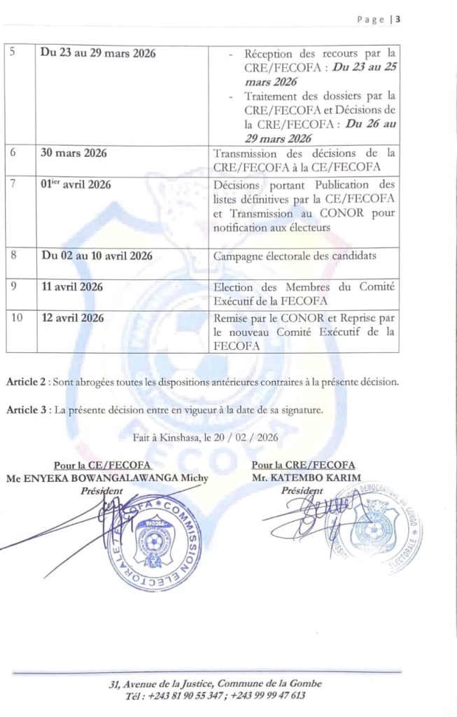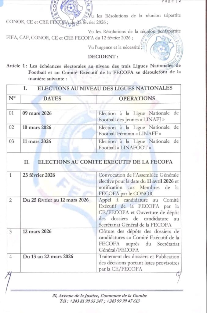 La Commission électorale a dévoilé le nouveau chronogramme des élections au niveau des ligues Nationales et à la FECOFA.