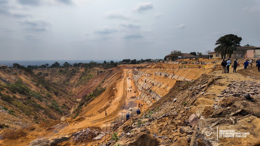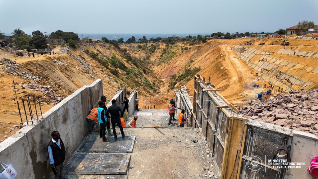 L’entreprise GUANGFA y construit un collecteur principal de 680 mètres (3 m x 3,80 m), ainsi que cinq caniveaux secondaires. À Makengo (LAE), la société SCIC réalise un caniveau de 2 m sur 2 m reliant huit avenues, tandis qu’à Maman Koko (LAE), l’entreprise CGCD a achevé un mur de soutènement.